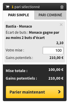 Soit le pari est gagnant et vous gagnez 210 euros !